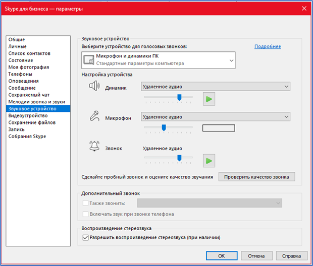 - Окно настройки звуковых устройств Skype